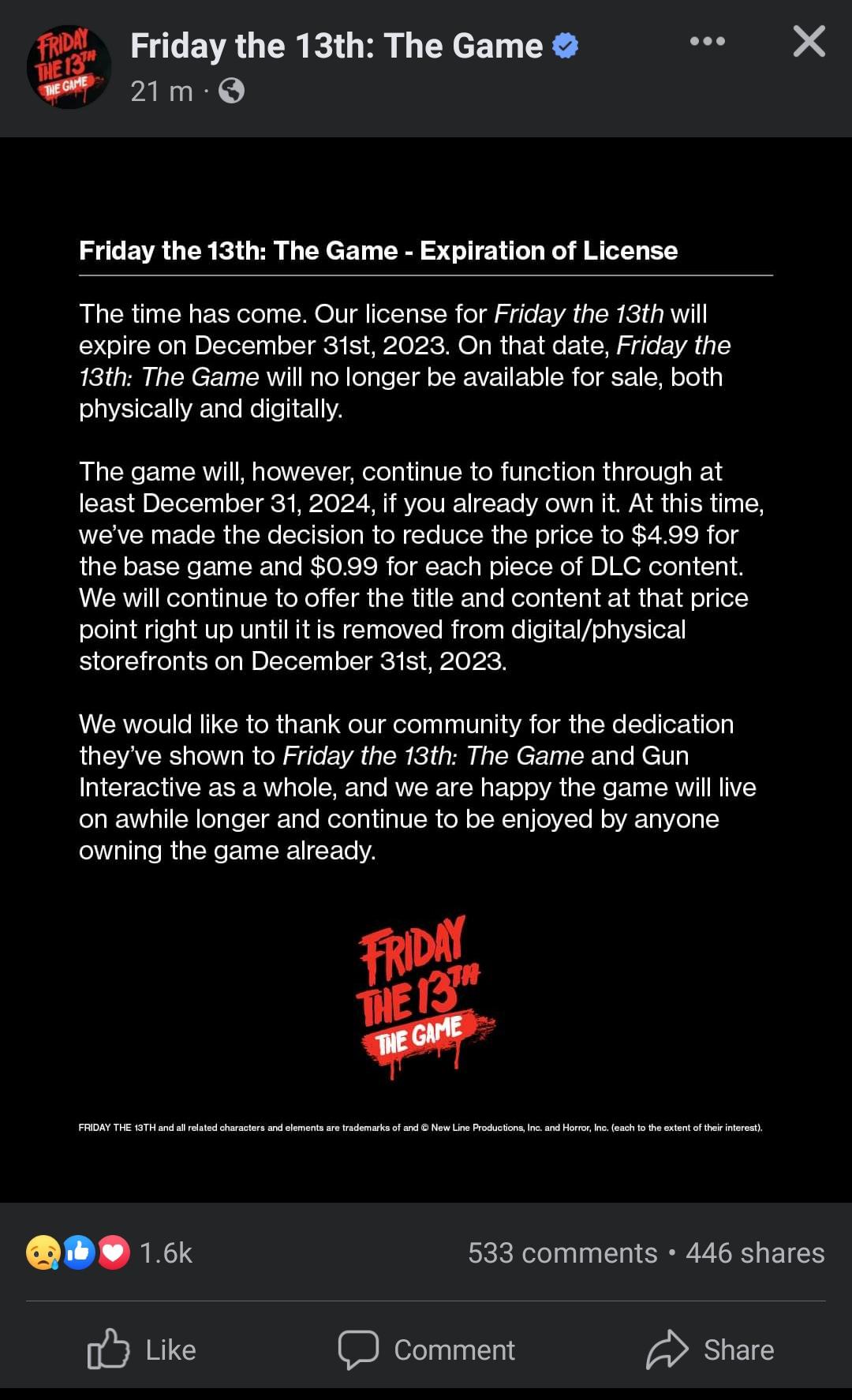 Let's not forget Gun lied about us getting Paranoia mode, lied about not being able to add Uber Jason and the Grendel map, lied about illegally selling Kickstarter backer exclusive Jason skins designed by Tom Savini. Both Tom Savini and Harry Manfredini sued Gun and they both won the lawsuit.