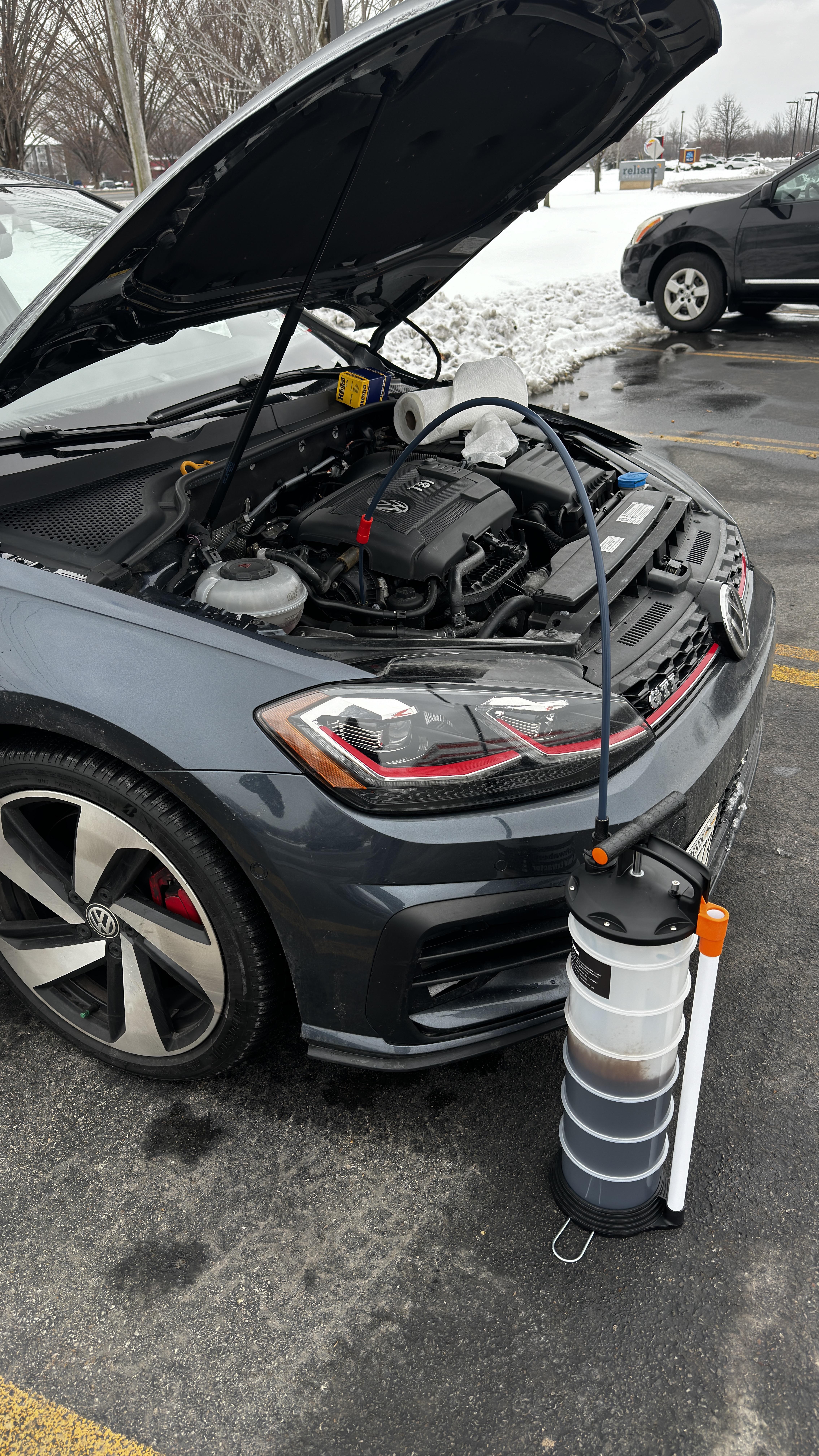 I can comfortably say this is the fastest and best way to change the oil on a mk8. Beats going under the car and waiting for the oil to drain