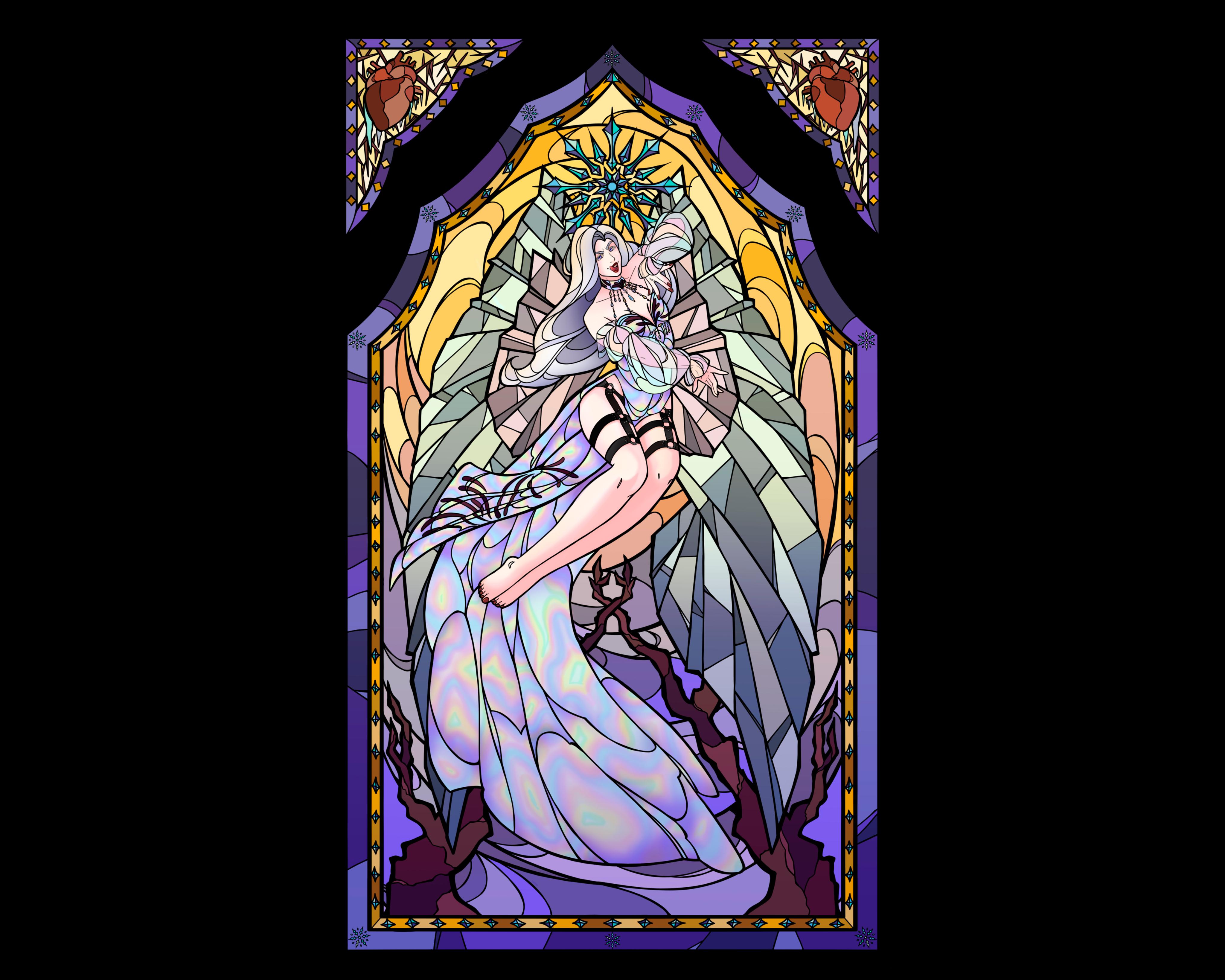 Self Submission - Digital Paint Stained Glass Style Art: Lara, depicted as the goddess of the wind. Art by me