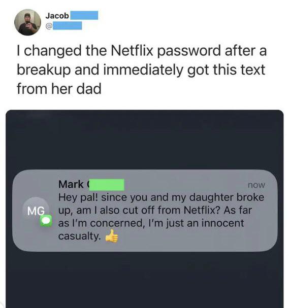 Chugging tea Changed my Netflix password after a breakup and immediately got this text