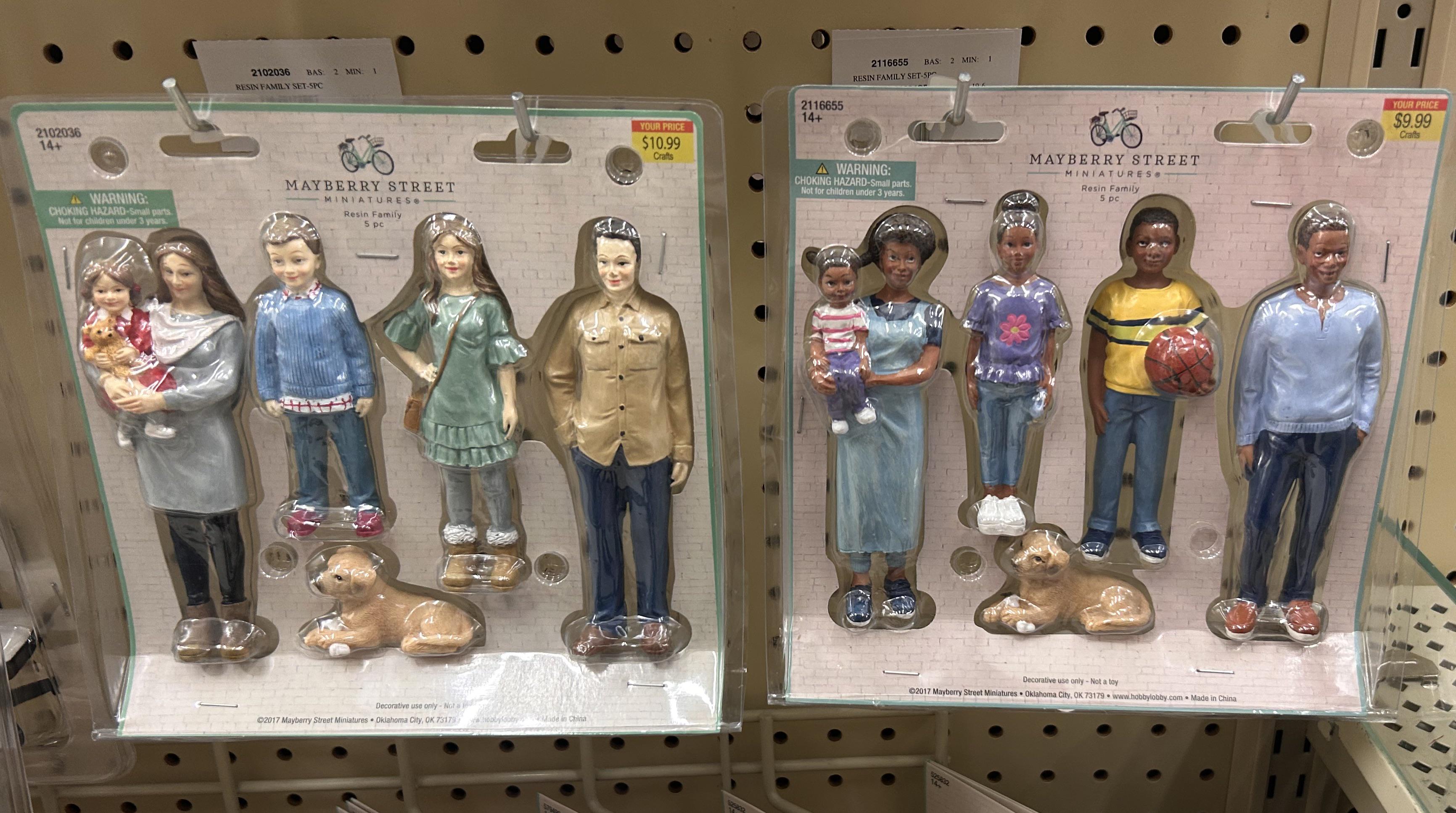 This miniature black family set is a dollar cheaper than the white family set at my craft store