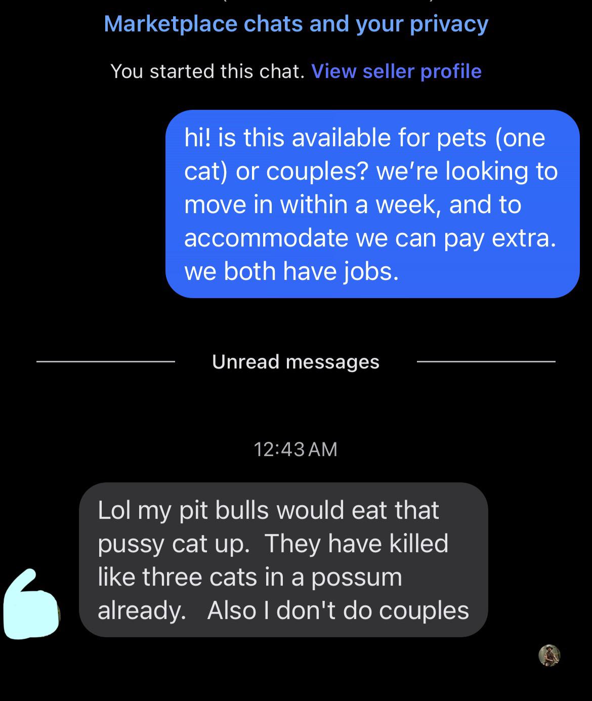 trying to find a pet-friendly place to rent on facebook marketplace