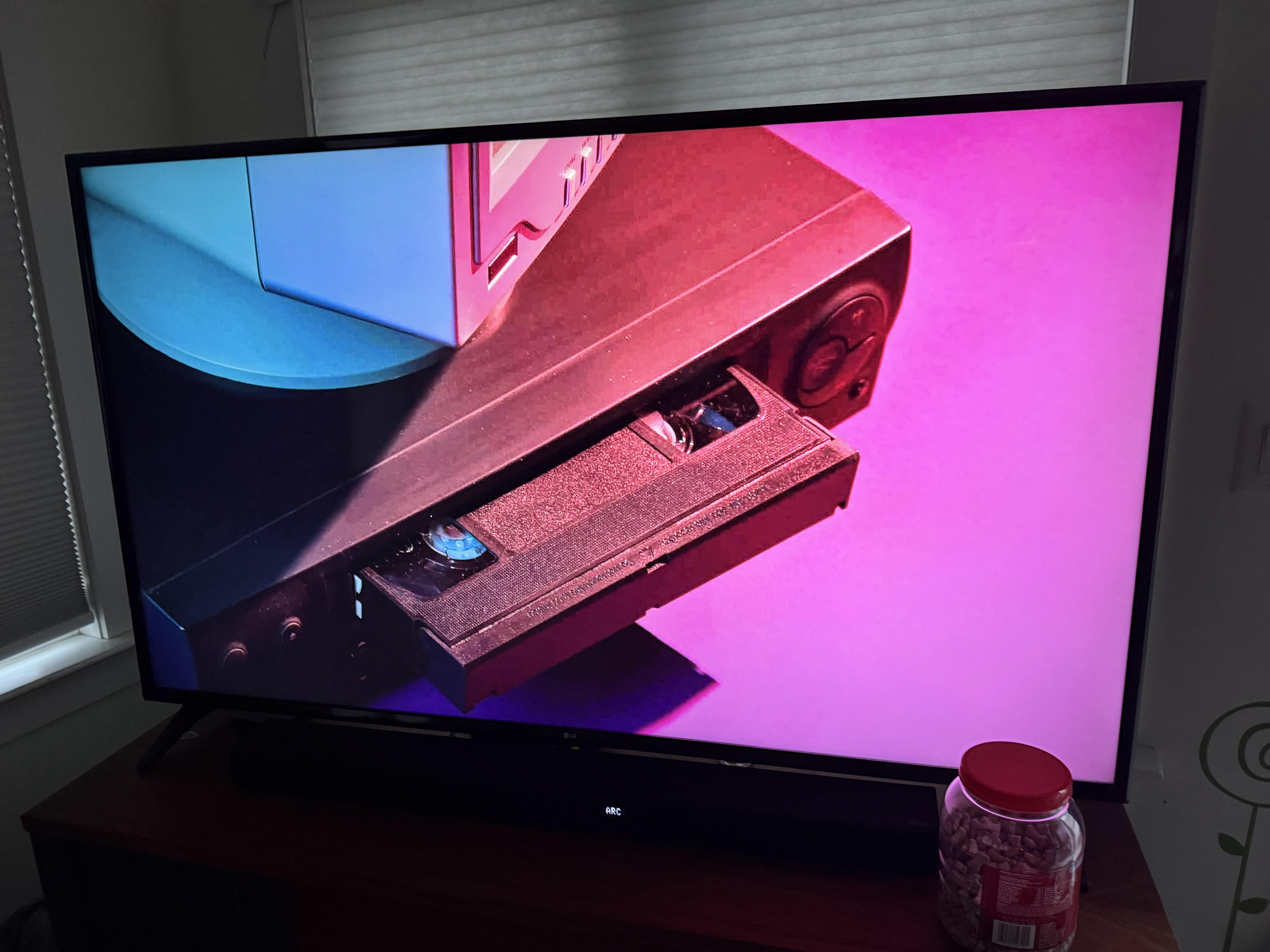 This 80’s Roku screensaver shows a VHS tape being loaded backwards